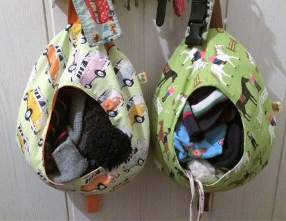 Kulturbeutel: Die Kosmetiktaschen „Big Vicky“ im Familienoutfit von pattydoo.de. Links sind sie außen aus Wachstuch, rechts aus beschichteter Baumwolle, die Innentaschen sind aus Baumwolle und für jeden Geschmack variierbar. Beide Varianten haben ihre Vor- und Nachteile: Wachstuch ist suboptimal zum knicken und nur abwischbar, beschichtete Baumwolle ist sogar waschbar, dafür nur wasserabweisend und nicht so dicht wie das Wachstuch. An den D-Ringen kann man noch Träger befestigen, um sie z.B. auf dem Campingplatz über die Schulter hängen zu können.